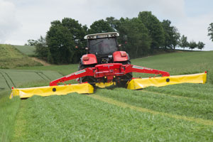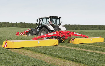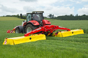 PÖTTINGER took mower technology to a new altitude at Agritechnica 2013 with the new NOVACAT S12 mower combination. The NOVACAT S12 is the largest mounted mower combination in the world requiring just 160 hp for a full 11.20 metres of working width. Now the smaller NOVACAT S10 joins the range. With a working width of 9.52 m, this mower combination offers the highest performance at a very low power requirement of only 130 hp. Utilising this combinations' output of 11 hectares per hour is a real joy, plus the NOVACAT S10 excels in the value-for-money field. The NOVACAT mower combinations are in a class of their own when it comes to performance, efficiency and reliability.