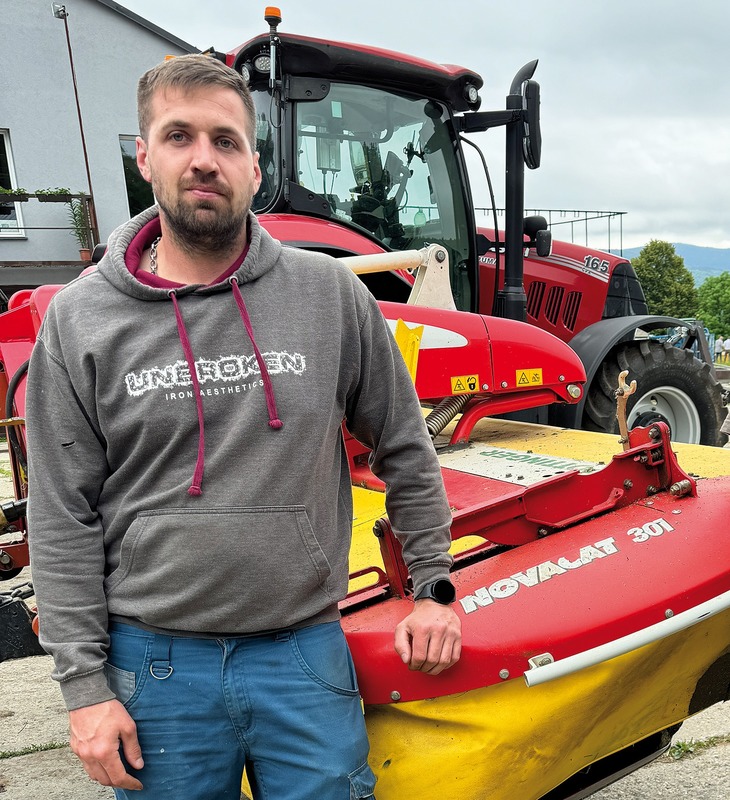 „U travních porostů děláme za sezonu dvě seče, pícniny na orné půdě sklízíme třikrát. V první seči sklízíme na senáž a na seno asi 450 hektarů travních porostů plus pícniny na orné půdě. V druhé seči, když vyjde počasí, je přibližně stejná výměra trav, ale některé plochy se musí přepást a potom je mulčujeme. Naštěstí nemáme velkou svahovitost, i když jsou místa, kde se obsluha při sjíždění do údolí zapotí,“ poznamenal Ing. Luděk Havelka.