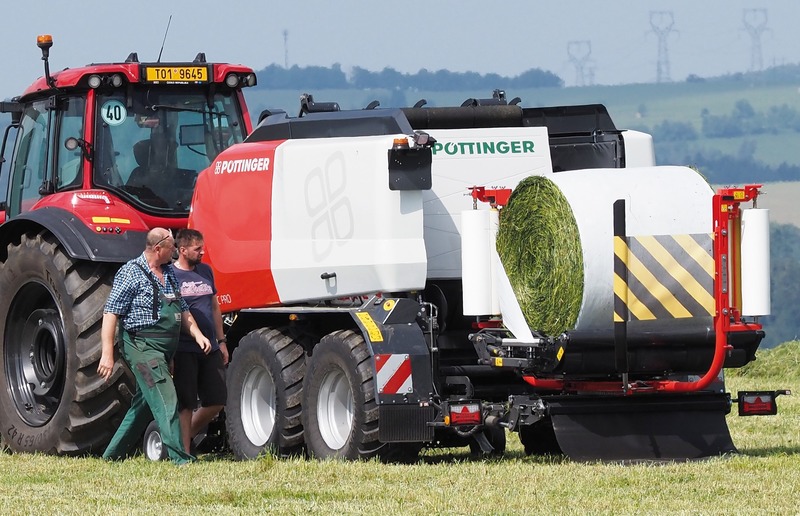 Lis na kulaté balíky s variabilní komorou IMPRESS 3160 VC PRO umožňuje obvodové vázání do fólie a je tak vhodný pro všechny podmínky nasazení, jak pro sklizeň senáže, sena nebo slámy. Nový stroj připravil a předal budoucím uživatelům na farmě v Dobřečově Josef Vlach (vlevo), servisní zástupce firmy Pöttinger pro ČR.