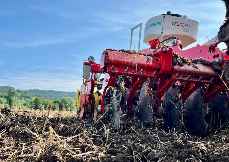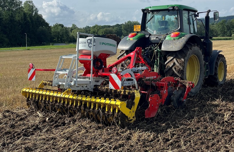 Dalším vhodným strojem, který pořídili v srpnu 2025, je přídavný nesený secí stroj TEGOSEM 200, který agregují s diskovým podmítačem TERRADISC. Plánují s ním set zelené hnojení, zakládat porosty jetelotrav hned po sklizni a případně přisévat pastviny a urovnávat povrch pozemků po černé zvěři.