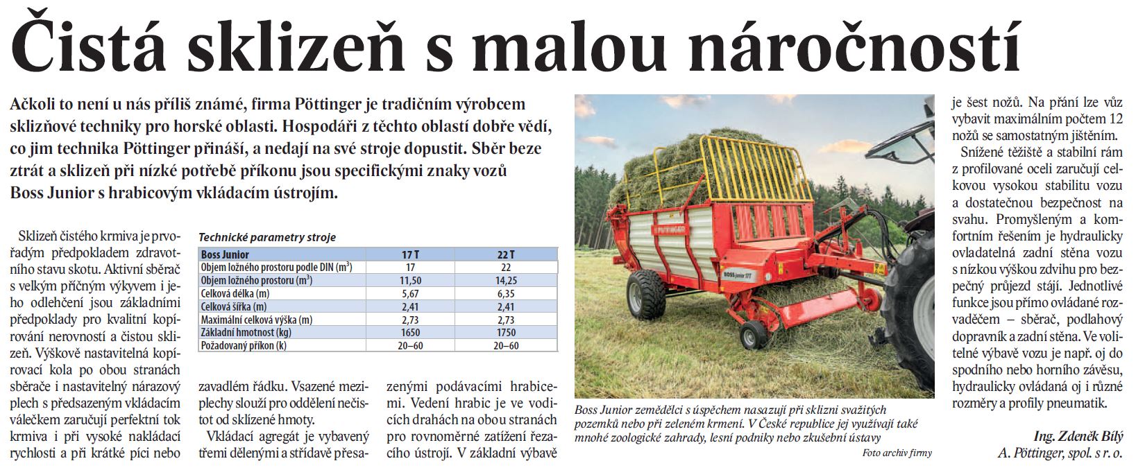Nejúspěšnějším segmentem techniky u firmy Pöttinger byla v uplynulém hospodářském roce technika pro sklizeň pícnin. Mimořádně k tomu přispěly novinky – velké víceúčelové návěsy modelových řad JUMBO 7000 a 8000 nebo menší samosběrací návěs BOSS s hrabicovým vkládacím ústrojím, jakož i žací stroje NOVACAT nebo nové pásové řádkovače MERGENTO VT.