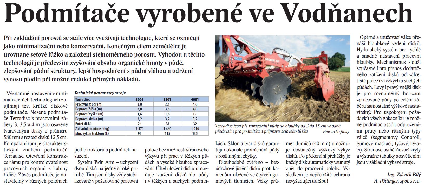 V moderní rostlinné výrobě nové systémy obdělávání půdy zintenzivnily trend k minimální míře tohoto obdělávání. Po žních je nutno posklizňové zbytky na celé ploše zpracovat tak, aby mohl proces rozkladu brzy započít. Tato směs rostlinných zbytků se zeminou vytváří optimální podmínky života pro živé organismy v půdě. TERRADISC je univerzálně použitelný a lze ho využívat i k úpravě osevních ploch přímo před setím. Tažené, horizontálně sklopné diskové podmítače TERRADISC T a TERRADISC HT přesvědčí maximální plošnou výkonností se záběrem až 12,5 m a pracovní rychlostí až 18 km/h.