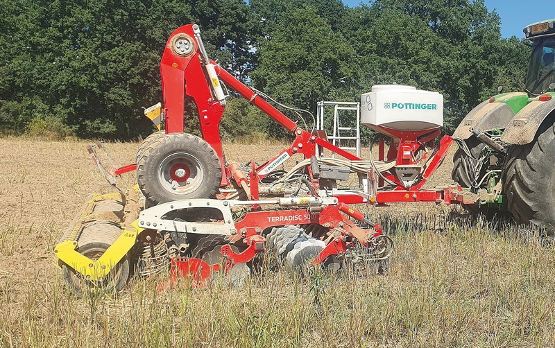 Diskový podmítač TERRADISC 5001 T kombinují podle potřeby se secím strojem TEGOSEM 500 a využívají ho na přísevy tzv. zeleného úhoru.