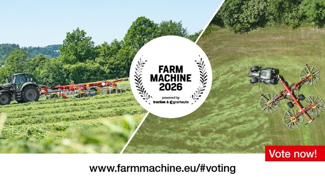 The "Farm Machine" award is one of Europe's most coveted awards for agricultural technology. This year, PÖTTINGER has been nominated for the Audience Choice Award with its TOP VT 12540 C rake. The aim is now to collect as many votes as possible by Friday, 7 November.