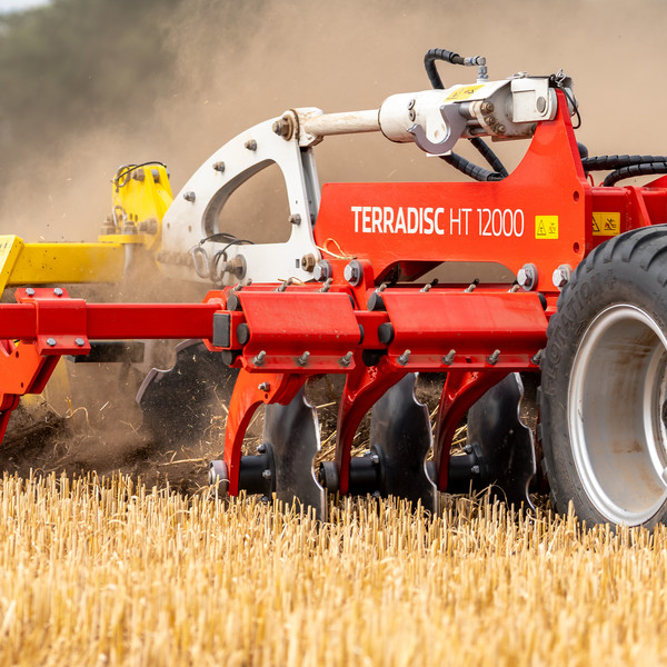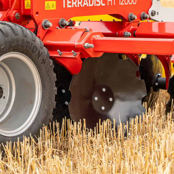 Eine sehr breite Klemmschale und zwei massive, geschmiedete Tragarme – dafür steht das bekannte TWIN ARM System von PÖTTINGER. Durch die breite Lagerung am Rahmen mit 380 mm breiten Klemmschalen behalten die Scheiben immer ihre Position und Einstellung bei. Selbst auf schweren, trockenen und verdichteten Böden können sie nicht seitlich ausweichen, harte Fahrspuren werden sicher aufgebrochen und eine gleichmäßige Bearbeitungstiefe erzielt.