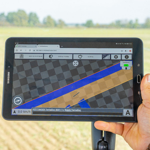 In Kombination mit der GeoSuite App ermöglicht PÖTTINGER CONNECT – COMMAND bzw. COMPLETE eine grafische Darstellung der Bedeckungskarte. Die Anwendung kann mit beliebigen Tablets und Smartphones über den Webbrowser aufgerufen werden. Die Verbindung zum Anbaugerät geschieht ganz einfach via WLAN.