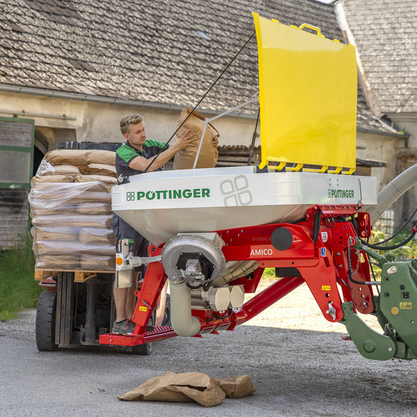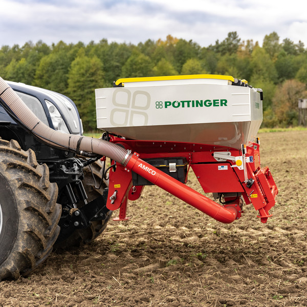 Um weite Förderstrecken und maximale Einsatzsicherheit gewährleisten zu können, wird beim AMICO F auf das Drucktanksystem mit Überdruck zurückgegriffen. Dadurch sind hohe und konstant gleichbleibende Dosiermengen möglich. Für eine weitreichende Einsatzflexibilität können verschiedene Medien unterschiedlicher Größe in Kombination ausgebracht werden.