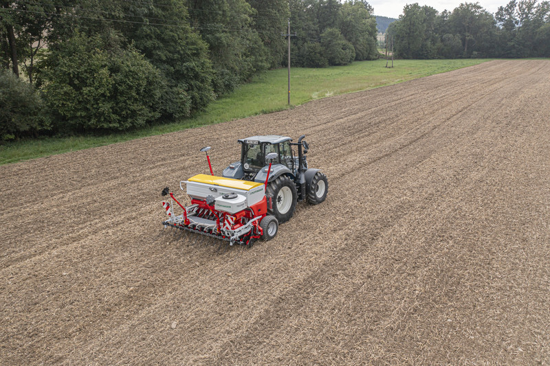 Die Ausbringung einer zusätzlichen Komponente erfolgt über Prallbleche auf Höhe der Säschiene. Konkret kann dadurch die Aussaat von Untersaaten oder Begrünungen erfolgen. Besonders bei erosionsgefährdeten Standorten bietet eine flächige und stetige Begrünung Vorteile für den Boden.