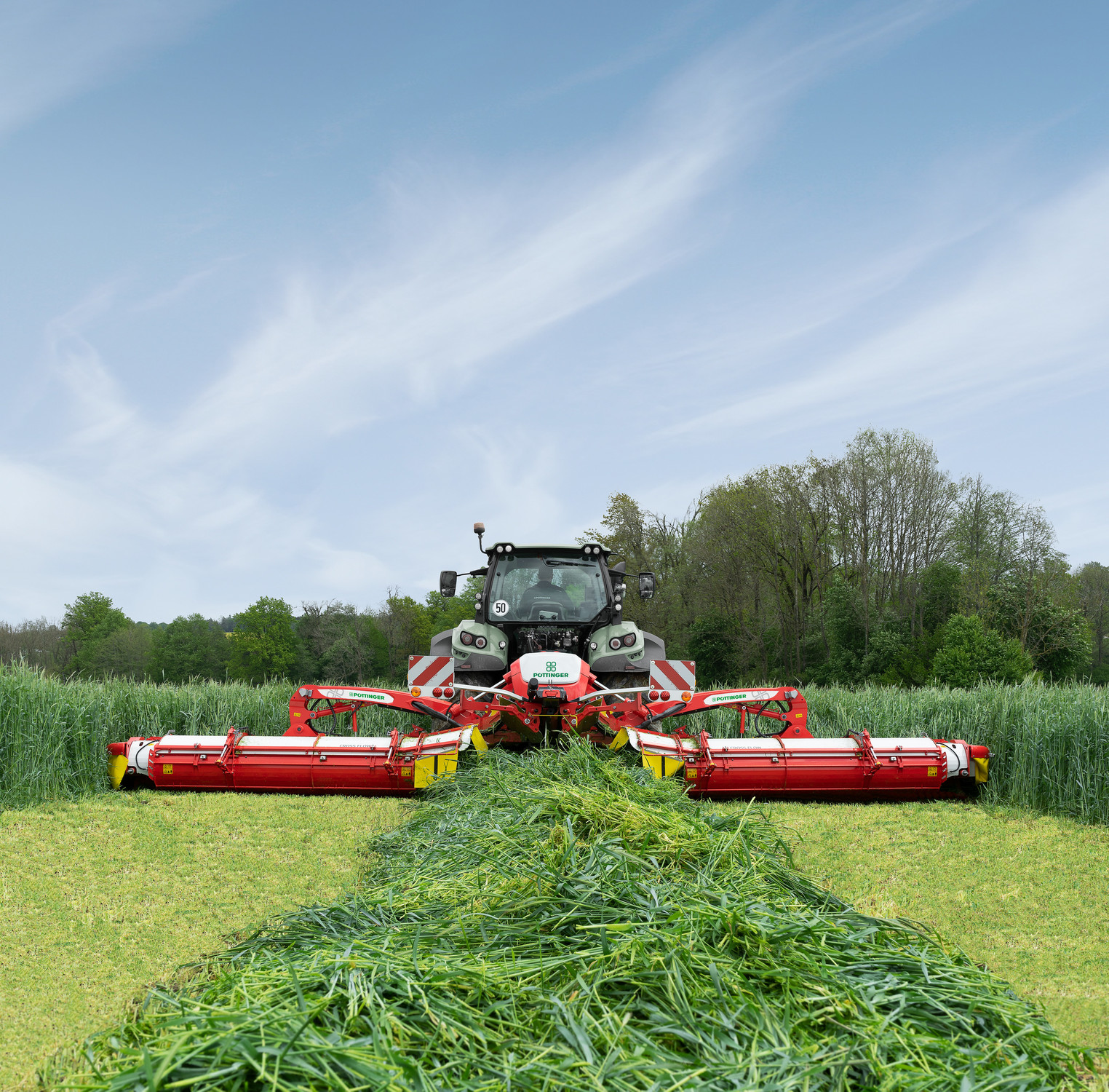 Met maaicombinatie NOVACAT V 10000 combineert PÖTTINGER een hoge capaciteit met intelligente techniek. Optimale bodemaanpassing, optimaal gebruik van de maaibreedte en een hoge betrouwbaarheid zijn de belangrijkste kenmerken van deze maaier.